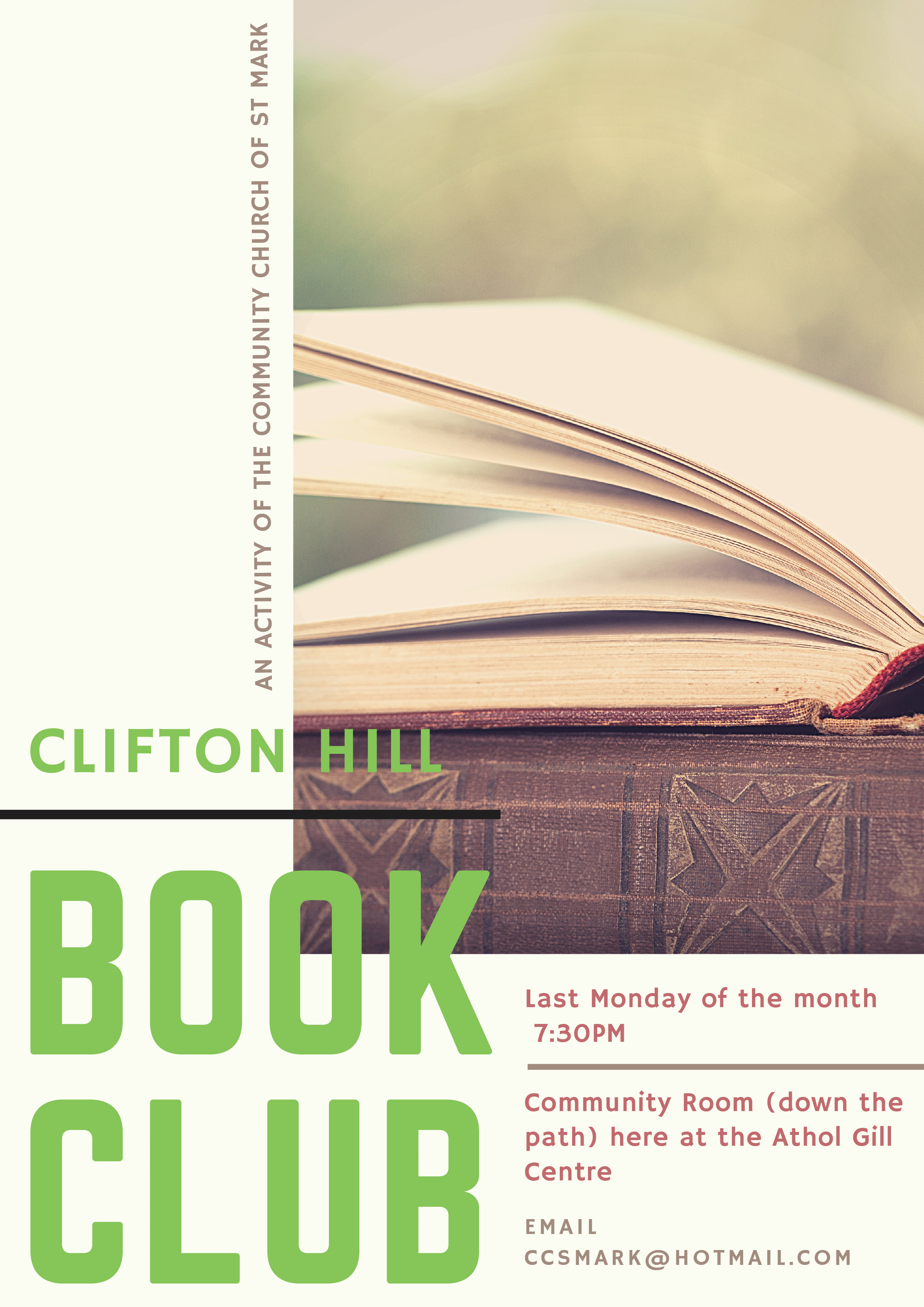 Join a group of avid readers. We read and discuss a good mix of genres, including: sci fi/fantasy, murder mysteries, historical novels, classics, an occasional non-fiction title, and with a prize winner and a feminist novel or two in the mix. We are a friendly and enthusiastic group: a mix of CCSM members and local neighbours, who enjoy discussing literature over a cuppa and chocolate bickie or two. We also share personal stories, current issues and politics, often sparked by the book we are reading.